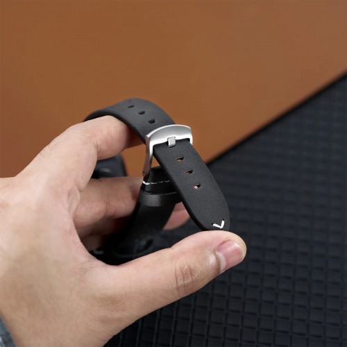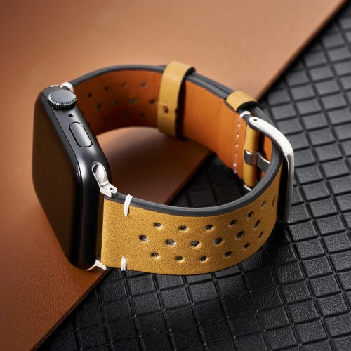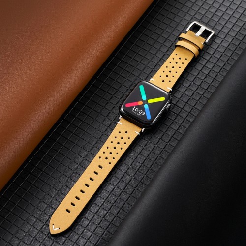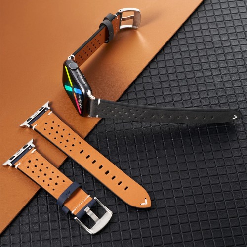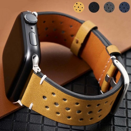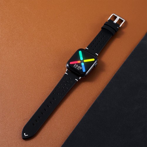 Upgrade your Apple Watch with this breathable perforated vegan leather watch band, designed for everyday comfort and a clean, modern look. Made from durable PU leather with a soft matte finish, this band offers the look of leather with a lightweight and flexible feel. The perforated design improves airflow to help reduce sweat during daily wear or workouts. Finished with a secure sport pin buckle, it provides a reliable fit for all-day use while maintaining a stylish appearance.